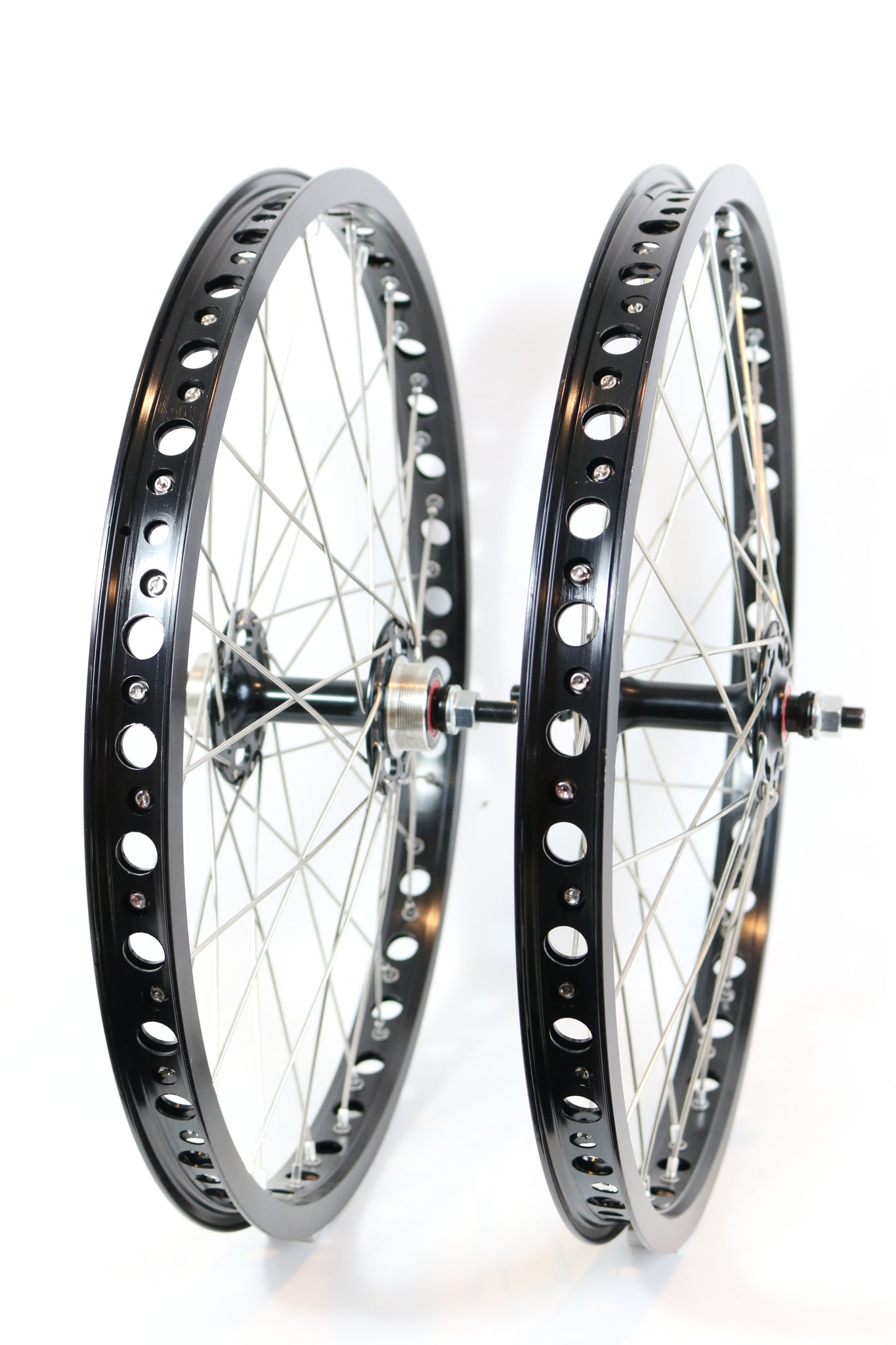 Experience unmatched performance with the Technique BMX 20 inch Alloy BMX Wheelset. Engineered for riders who dare to push limits, these wheels feature sealed bearings and a high flange design for superior strength and responsiveness. Crafted from ultra-lightweight yet durable alloy, the 36-hole construction ensures ultimate stability and endurance during intense tricks and rugged terrain. Elevate your ride with a wheelset built to withstand the toughest challenges while maintaining agility and speed. Choose Technique BMX to dominate the streets and parks with gear as fearless as you are.